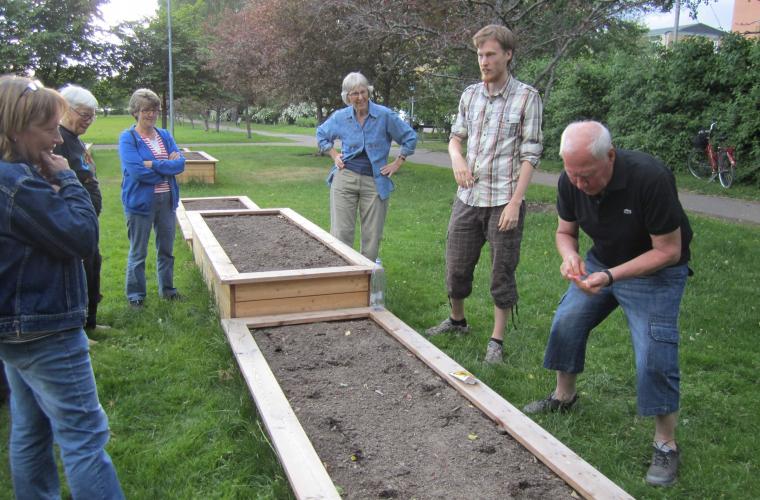 – Jag har sett min mammas och min frus planteringar men har själv aldrig satt ett frö. Jag har bara klippt gräsmattan innan, berättar Ulf Jernspets som anmält sig till stadsodlingen helt förutsättningslöst.