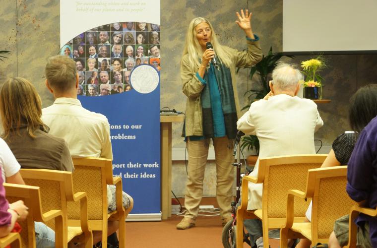 – Vi behöver vända från globalisering till lokalisering för att lösa våra problem. Det är vad jag kallar Economics of happiness, säger hon.