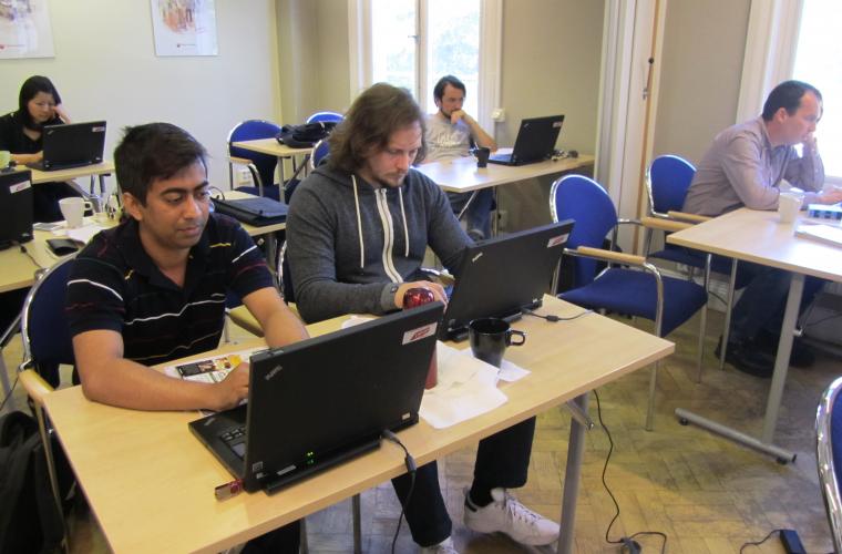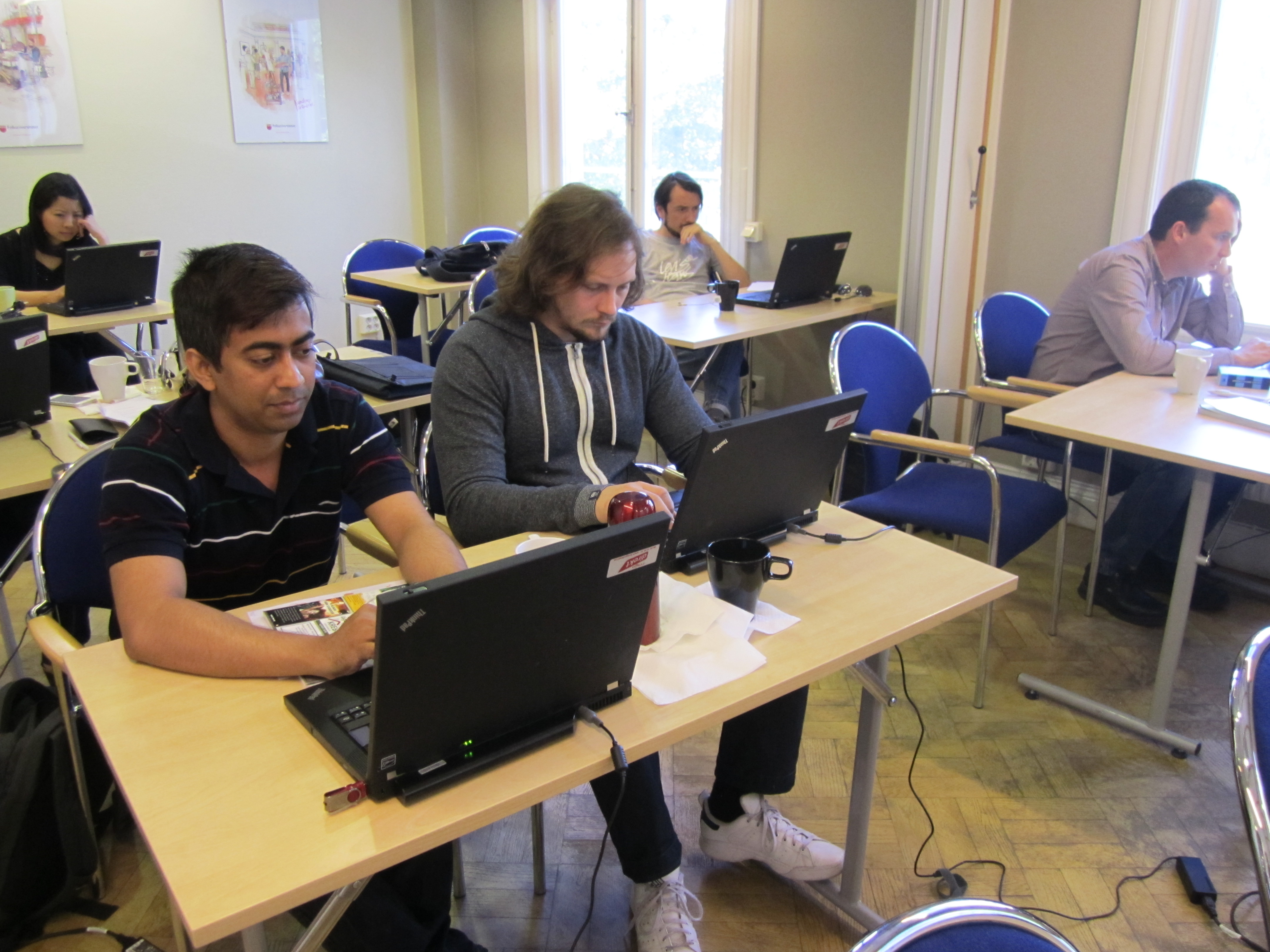I klassrummet med utsikt över älven hörs ett skratt. Arbetsterapeuten Tomislav Hajduk från Serbien vänder sig mot allmänläkaren Shaikh All Fattah från Bangladesh och visar honom något på sin dator. De jobbar med översättning av texter och småpratar lite under tiden. Tomislav Hajduk har hittills spenderat nio månader i Sverige, men har en svensk flickvän sedan två år tillbaka.
