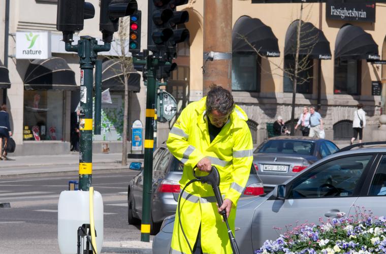 När han har sprutat färdigt med högtryckstvätten vid Hornstull säger han:
