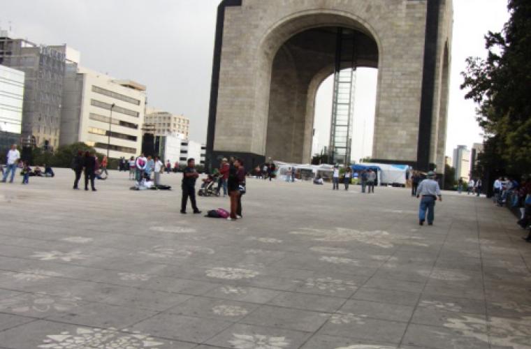 Under Moose workshops i Mexiko fick deltagarna göra stenciler i plywood med hjälp av sticksågar. Stencilerna användes sedan för att göra rena avtryck på den skitiga marken framför Monumento a la revolucion, som är ett minnesmärke över den mexikanska revolutionen i Mexiko city.